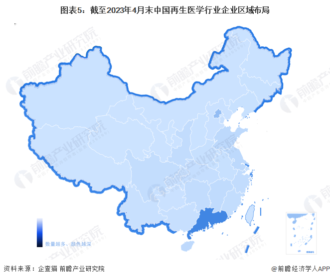 从我国再生医学企业分布来看,广东地区再生医学注册企业最多,超过3000家;其次为北京地区,约有1300家。江苏、上海和浙江等地也是再生医学注册企业也相对较多。