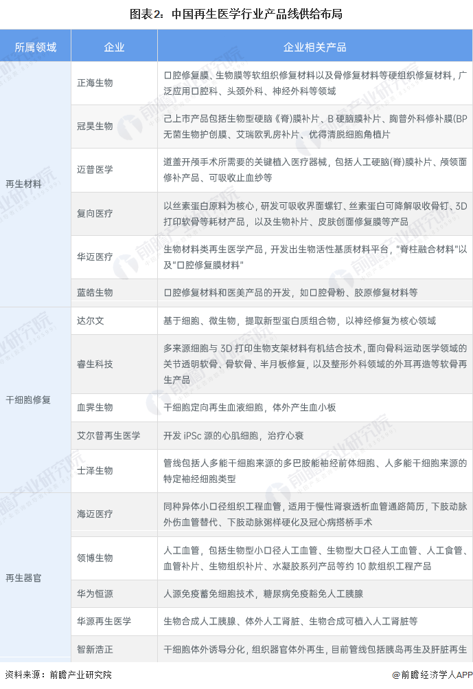 本文核心数据:中国再生医学产品线布局;中国再生医学企业研发投入;中国再生医学行业区域格局