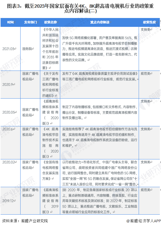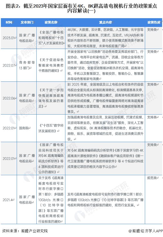 ——国家层面4K、8K超高清电视机行业政策汇总