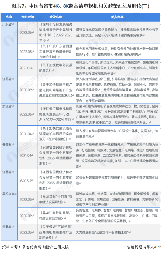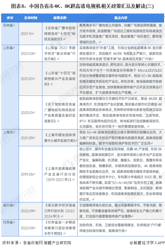 ——31省市4K、8K超高清电视机行业政策汇总