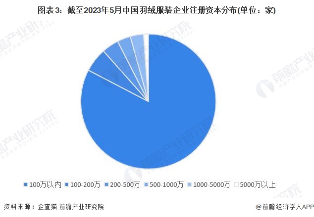 ──羽绒服装企业注册资本在100万以内的企业近一半
