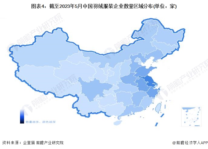 全文统计口径说明:1)上述数据均来源于中国企业数据库(企查猫),存在一定的统计误差;2)搜索相关关键词为“羽绒服”;3)企业筛选逻辑为:企业的名称、产品服务、企业简介和经营范围中包含了“羽绒服”的企业;4)统计时间截至2023年6月3日;5)由于中国企业数据库与全球企业数据库不同,存在一定的统计误差;6)若有特殊统计口径会在图表下方备注。