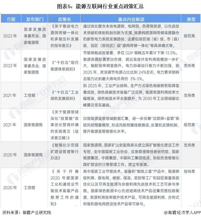 2020年以来,国务院、国家发展改革委员会、国家能源局、国家工业和信息化部等多部门陆续印发了支持、规范能源互联网行业的发展政策,内容涉及能源互联网行业的发展目标、推进工作等方面: