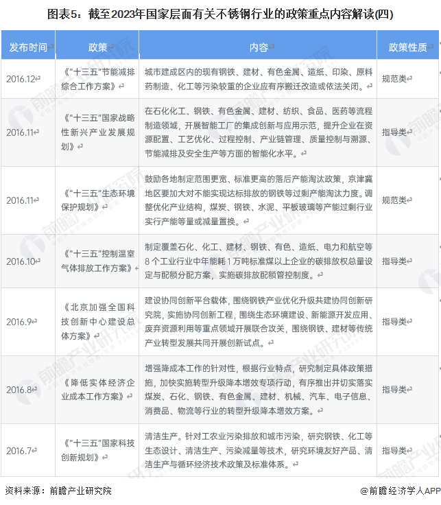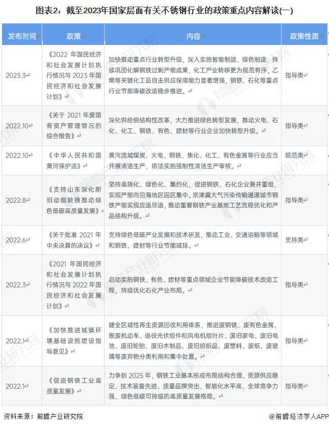 近年来,为更好的引导不锈钢行业为代表的电器产业的良性发展,政府及有关部门出台了一系列的指导类政策,政策主要围绕不锈钢行业转型升级、促进不锈钢产品节能化、环保化发展等方向。