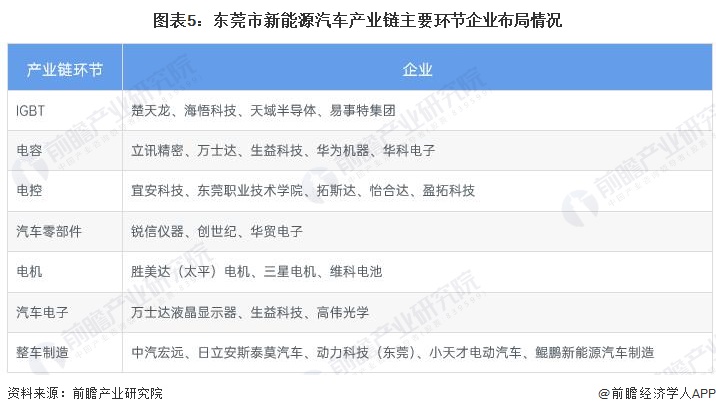 目前,东莞新能源汽车产业链不断完善,在原材料/元器件环节、产业链上中下游均有较多企业布局。