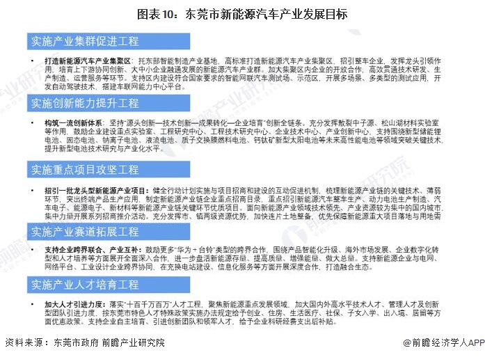 根据《东莞市新能源产业发展行动计划(2022—2025年)》,东莞市重点瞄准新能源汽车、电动轻型车等四大领域,实施新能源产业集群培育、创新能力提升、重点项目攻坚、产业赛道拓展、产业人才引育等五大工程,促进形成新能源产业集聚发展生态圈。打造新型储能电池产业集聚区、新能源关键信息技术及产品集聚区,加快推动新能源产业成为产业“新立柱”,牵引带动东莞经济高质量发展。