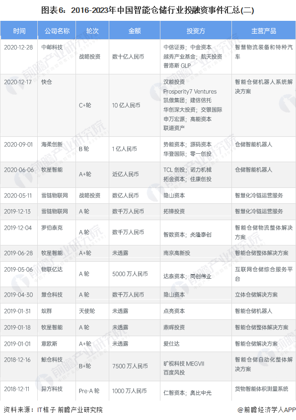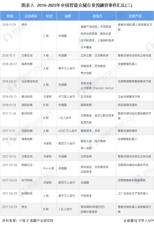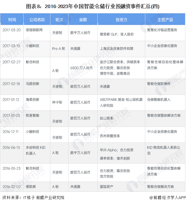 2016年-2023年我国智能仓储行业的主要投融资事件如下: