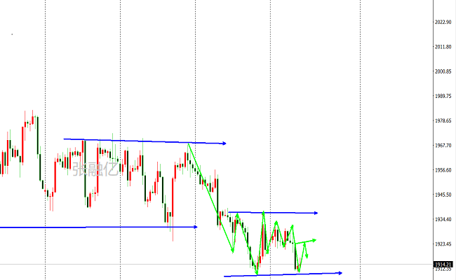 黄金近期连续箱体运行,上轨承压下行,日线探高收低中阴K线,短线重新走弱,此前的局部反弹只是修正蓄势,周初在1933之下形成关键临界点,本周的主思路将进一步下看或下破1900整数关口,横盘整理后的酝酿突破。4小时图,黄金连续两次测试都突破未果,短线图在1933处形成了小台阶的空头防守点,近期也是1910-1902低点在下移。昨日从上轨摔至下轨,今天加大了下破的幅度。阻力位上上方金价的回撤低点1920。此位转换成阻力。中轨与破低口重合,此位是今日的阻力空点。综上所述张融亿总结:黄金震荡偏空,后市操作上考虑反弹做空为主,低多为辅,上方关注1915-1920美元阻力,下方关注1902-1888美元支撑。