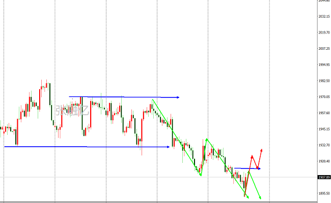 黄金周四先跌后涨,黄金给出新低价1892美元/盎司一线反弹,高点在1913美元承压。黄金整体运行在下跌趋势通道中,但是黄金在给出新低后的上涨出现了加速迹象,当前阻力位下移在1913美元,上方多空分水岭在1920美元/盎司,再次突破后黄金将出现止跌反弹的概率,下行强弱一线在1880美元/盎司。综上所述张融亿总结:黄金运行在下行趋势通道中,后市操作上考虑高空低多策略,上方关注1913-1920美元阻力,下方关注1900-1892美元/盎司。