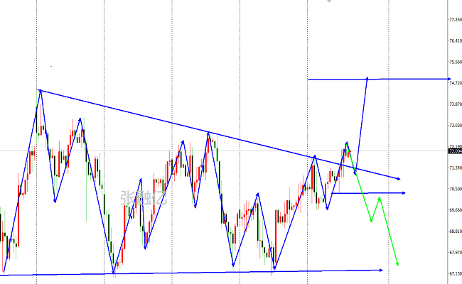 昨日美原油市场早盘开低开在70.87美元/桶,后行情先回落,日线最低给到了70.25美元/桶,后行情拉升,日线最高触及到了72.07美元/桶后行情整理,日线最终收线在了71.73美元/桶,后行情以一根下影线很长的中阳线收线,而这样的形态收尾后,技术上有延续拉升需求。4小时图小台阶震荡上升当中,迂回整理慢性上涨,同时也稳固了支撑。昨日在中轨附近启稳进一步推高上涨。日内短线的支撑点也是防守点上移至70.1美元/桶。综上所述张融亿总结:原油震荡上涨,依旧运行在三角震荡,上方强弱一线在72.8美元,突破之后才能转强,今日操作上考虑回撤布局多单一次,下破做空为辅,上方关注72.8-73.5美元阻力,下方关注71.0-70.1美元支撑。