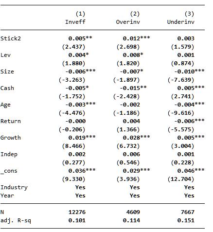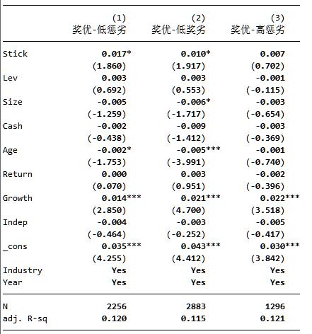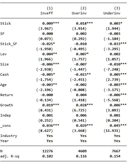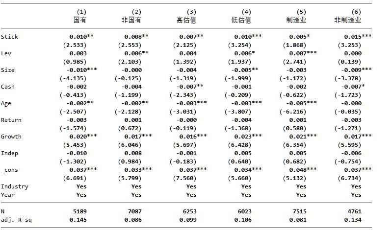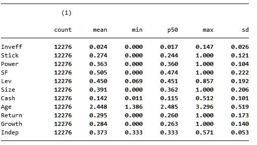 本文初始样本来自中国全部A股上市公司,考察窗口为2010- 2022年。本文对样本数据进行了如下处理: (1)剔除金融保险类上市公司; (2)剔除ST、*ST上市公司; (3)剔除数据缺失样本; (4)对全部连续变量进行了1%和99%的缩尾(winsorize)处理; (5)对主要变量进行了归一化处理(Stick、SF、Power); (6)为控制潜在的自相关问题,所有OLS回归结果标准误经过公司层面聚类调整。最终获取包含12276个样本的非平衡面板数据。