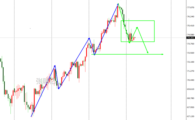 美原油市场昨日延续回落过程,早盘低开在74.98美元/桶,后行情震荡回落给出74附近后行情受到突发基本面影响短期急速拉升,日线最高触及到了76.07美元/桶,后行情并未能站稳而是又急速下落,日线最低给到了73.8美元/桶,后行情宽幅区间整理,日线最终收线在了74.13美元/桶,后日线以一根上影线极长的大阴线收线,而这样的形态收尾后,延续弱调格局。4小时图一根单针探高十字K线,点到布林道中轨承压快速回落,K线形态表现并不强势,强势行情。昨日回撤后应该快速收复失地,而不是形成探高回落,隔日收在低位,使得今日短线还会先延续走回落。综上所述张融亿总结:原油高位承压,今日操作上考虑反弹做空为主,低多为辅,上方关注74.5-75.2美元阻力,下方关注73.8-72.8美元支撑。