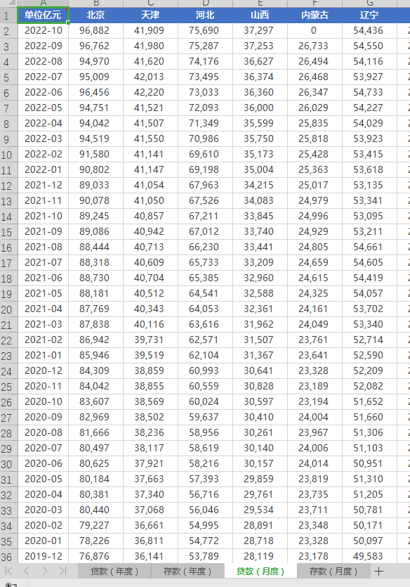 各省金融机构本外币存款余额(年度、月度)、各省金融机构本外币贷款余额(年度、月度)