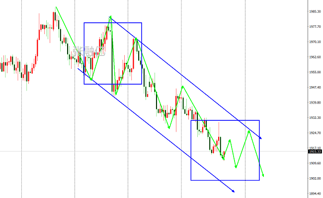 黄金上周五小幅震荡,并无突破之意,在经过连续四天的下行之后,黄金空头持续发力中。金价目前还是维持在下降楔形的形态当中,上方的区间压力已经来到了1921附近,均线的压力也处在1921附近。周五也是强调了比较标准的震荡下跌,前一高点始终未破,在台阶下行通道中,只要次高点不破。短线反复迂回也会回归跌势。下方需要留意1903-1890区域中有反复,小周期和日线形态看空不变。周初围绕1940之下看空即可。下方等待1890附近短多跟进。综上所述张融亿总结:黄金大阴线打压之后触及前期低价水平,今日操作上考虑反弹做空为主,低多为辅,上方关注1930-1940美元阻力,下方关注1903-1890美元支撑。