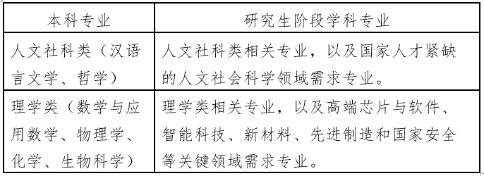 ②其他服务国家重大战略需求的高端芯片与软件、智能科技、新材料、先进制造和国家安全等关键领域以及国家人才紧缺的人文社会科学领域相关专业。