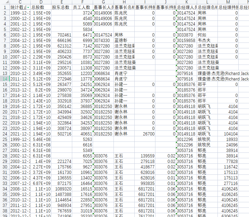 数据整理全国沪深上市公司A股公司治理信息统计数据,数据样本53038条,数据统计总股数、股东总数、员工、董事长、总经理信息及持股情况,按行业名称和省份地区划分。