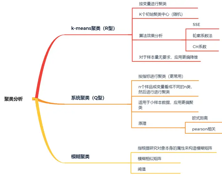 典型的聚类分析一般包括三个阶段,特征选择、特征提取和数据对象见相似度的计算,可以对样品进行聚类也可以对变量进行聚类。具体划分如下: