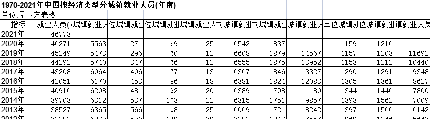 [经管数据集] 1970-2021年中国按经济类型分城镇就业人员(年度) |