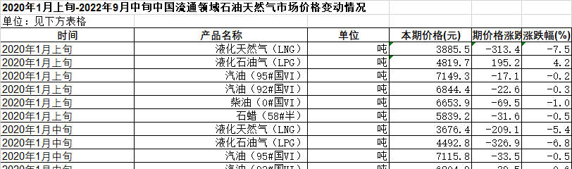 2020年1月上旬-2022年12月中旬中国流通领域石油天然气市场价格变动情况.xlsx