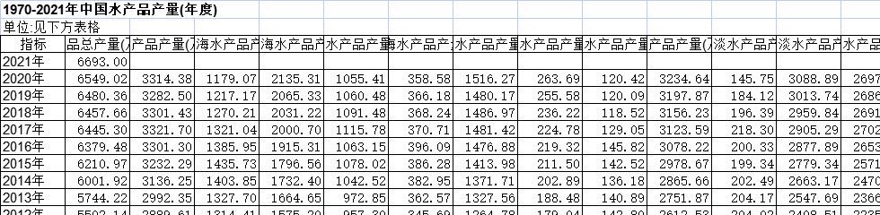 [经管数据集] 1970-2021年中国水产品产量(年度) |