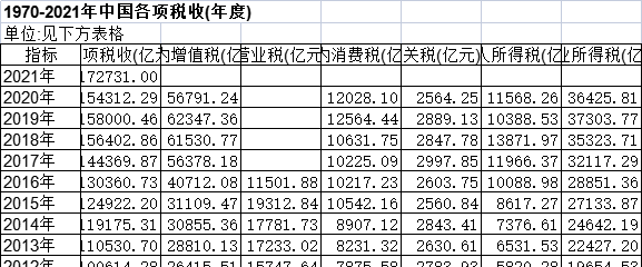 [经管数据集] 1970-2021年中国各项税收(年度) |