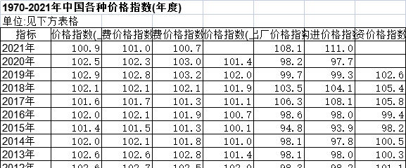 [经管数据集] 1970-2021年中国各种价格指数(年度) |