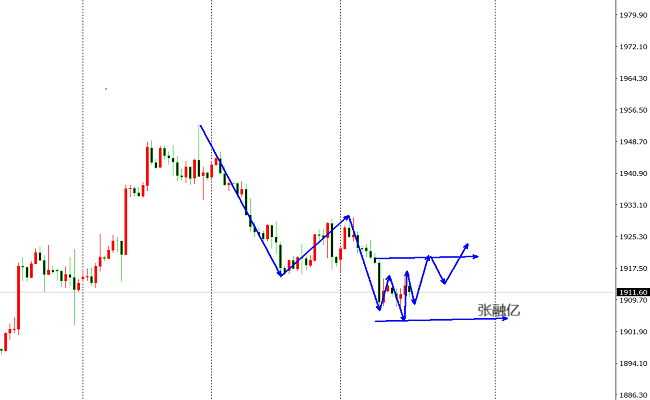 黄金美盘在下探1905美元之后企稳反弹,最高点触及1915美元徘徊震荡。黄金日线处于进一步中继回落的形态当中。依托十字K线的高点1920作为临界点转换回落。不过节奏还是缓慢震荡式的,美元强弱持续不定。依旧限制黄金了黄金的空间。4小时图构造了一波二浪小台阶震荡下跌,此前在1930处连续两次整理承压,再次破低下行后构造出二浪式延续。目前低点1905是支撑临界点,短线看延续震荡。综上所述张融亿总结:黄金破低反弹,金价有望出现企稳,后市操作上考虑高空低多策略,上方关注1915-1920美元阻力,下方关注1905-1900美元支撑。