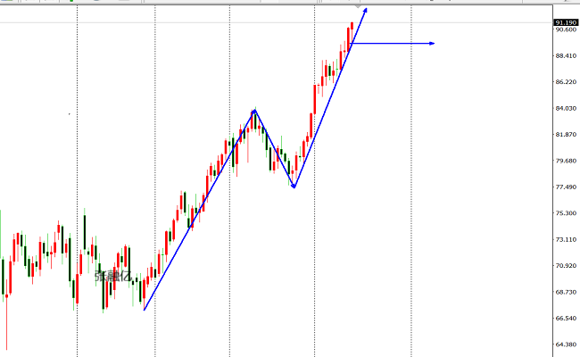 原油本周震荡上涨,油价不断攀升,最高点触及91.90美元/桶水平震荡。原油周线收录一根大阳线,油价再破新高,低位没有破新低,出现了出头走势,原有下周延续看涨思路。从四小时级别上看,布林带开口向上,均线金叉向上发散中,油价持续运行在上轨区域,原油在77.4区域形成企稳上涨后,原油上行通道比较强劲,目前强势多空分水岭在89.0美元/桶,然后就是88.2美元/桶平台支撑。综上所述张融亿总结:原油多头通道中运行,89.0不下破强势不改,下周操作上考虑回撤布局多单为主,上方关注92.6-93.8美元阻力,下方关注90.5-89.0,意外下破后关注88.2美元一线。