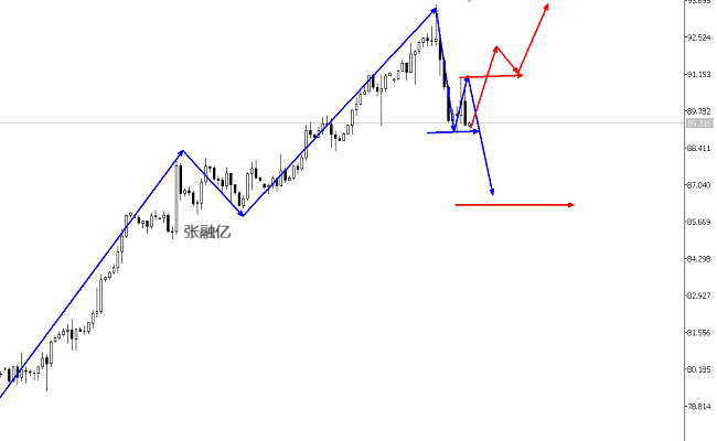 原油今日开盘在89.22美元/桶,窄幅震荡中,昨日尾盘油价在90.8-91.0区域遇阻回撤,快速下破触及89.2水平收线。日线收录一根大阴线,高价没有破前高,低价破前低,出现了落尾走势,原油的持续上涨出现了转折。从四小时级别上看,原油在92.4美元新高点水平,遇阻后出现了一波下跌,给到了88.94美元/桶,改变之前连续破高格局,在91.0水平遇阻后出现了第二波下跌,但是88.9前低水平下破后才能形成空头推动。综上所述张融亿总结:原油下跌第二波正在演变中,今日操作上考虑反弹做空为主,低多为辅,上方关注90.0-91.0美元阻力,进一步上破原油的格局将重新计算,下方关注88.9水平,进一步下破后关注87.6一线强弱点。