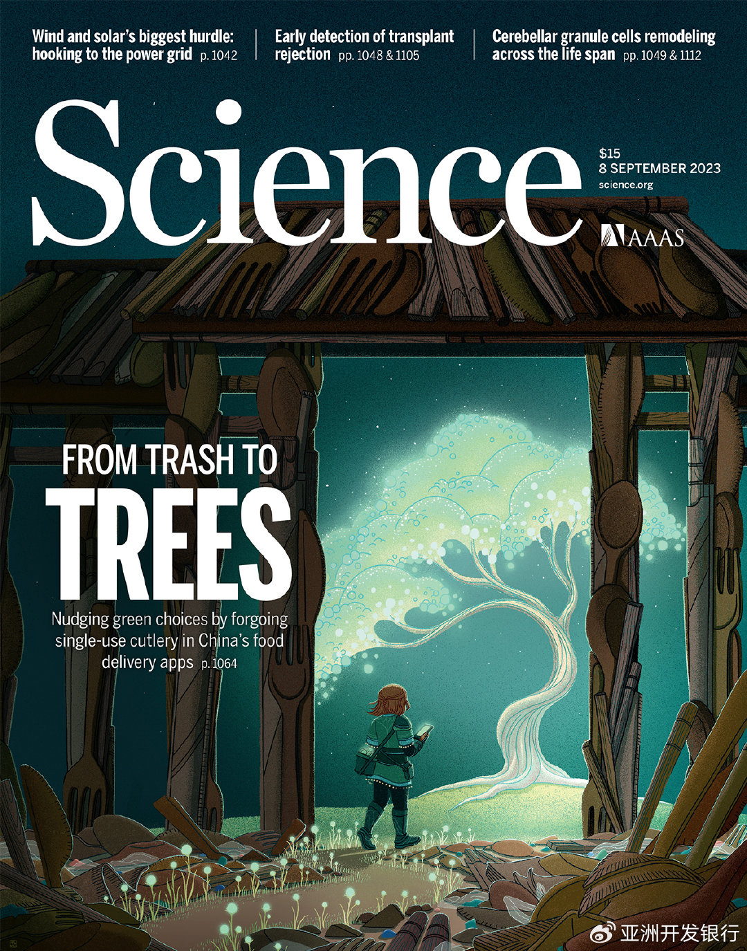 2023年9月8日,《科学》(Science)杂志以封面论文形式刊发了来自香港大学、北京大学、香港科技大学、东京大学、以及亚洲开发银行研究团队的重要研究成果: “Reducing single-use cutlery with green nudges: Evidence from China’s food-delivery industry”(绿色助推减少一次性餐具使用:来自中国外卖行业的证据)。该论文研究了饿了么外卖平台改动餐具选择用户界面这一绿色助推实践对于一次性餐具消费和减少塑料垃圾的影响。