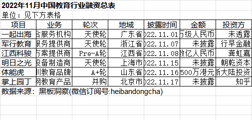 [经济学基础] 2022年11月中国教育行业融资总表 |