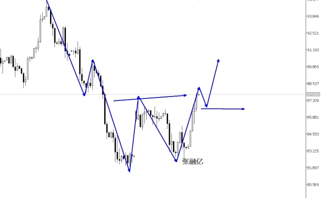 原油今日开盘即上涨,在87.0美元一线企稳拉升,最高点触及88.0水平震荡中。原油上周跳涨后开始回补缺口,再次上涨,当周最低83.3,最高87.8,周线收阳于87.7,从周线看,油价仍是上涨趋势,日线,从日线看油价受阻于中轨,本周看油价多头是否延续,进一步考验95.0美元阻力,突破后原油的上行空间有望打开。4小时图二次下探回升,依托82.30-81.50构造双底回升,同时突破颈线87.20.打破了台阶下跌浪形,同时站稳反转向上。4小时结构转多,本周思路依托中轨做为支撑点逢低做多。综上所述张融亿总结:原油震荡筑底,今日操作上考虑回撤布局多单为主,高空为辅,上方关注90.0-91.9美元阻力,下方关注87.0-86.0美元支撑。