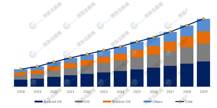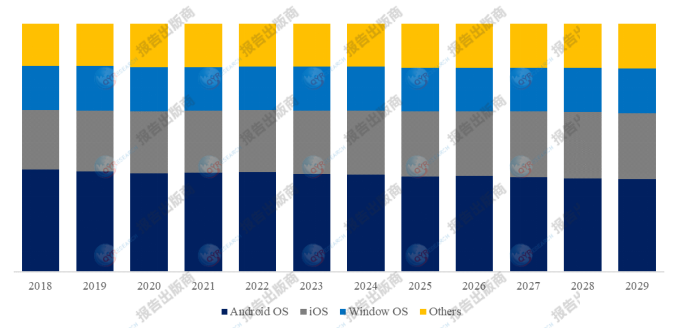 就产品类型而言,目前安卓系统是最主要的细分产品,占据大约40.3%的份额。