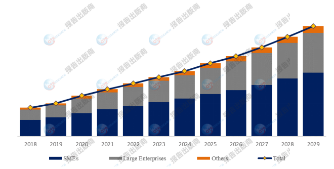 就产品类型而言,目前大型企业是最主要的需求来源,占据大约57.6%的份额。
