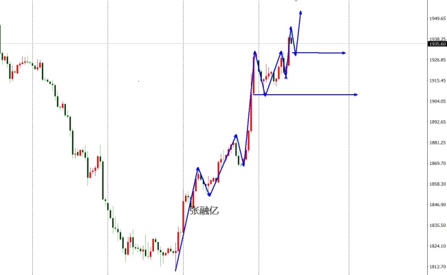 黄金市场区间波动,早盘行情开盘在1920美元/盎司,后行情先回落,日线最低给到了1911.9美元/盎司,后行情拉升,日线最高触及到了1932美元/盎司,后行情整理,日线最终收线在了1923美元/盎司,后行情以一根上下影线基本等长的纺锤形态收线,而这样的形态收尾后,今日的行情依旧有看多。4小时图依托中轨做为多头防守点,强势整理修正行情。周初回撤1907一线启稳,目前守住1916之上,关键的支撑点,回撤不失守,短线不失位。目前中轨的支撑也在慢慢上移1930美元。综上所述张融亿总结:黄金多头趋势中,今日操作上考虑回撤布局多单为主,上方关注1950-1955美元/盎司,下方关注1930-1920美元支撑。