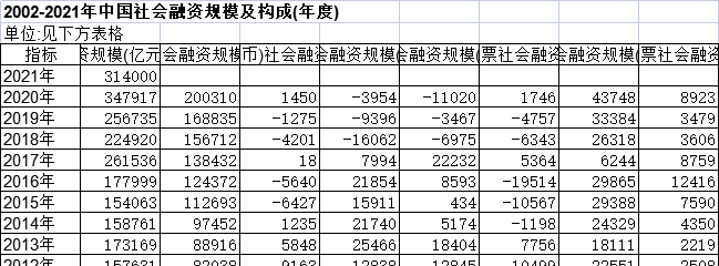 [经管数据集] 2002-2021年中国社会融资规模及构成(年度) |