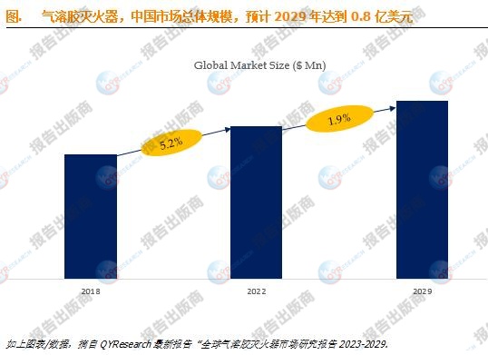 据QYResearch调研团队最新报告“中国气溶胶灭火器市场报告2023-2029”显示,预计2029年中国气溶胶灭火器市场规模将达到0.8亿美元,未来几年年复合增长率CAGR为1.9%。