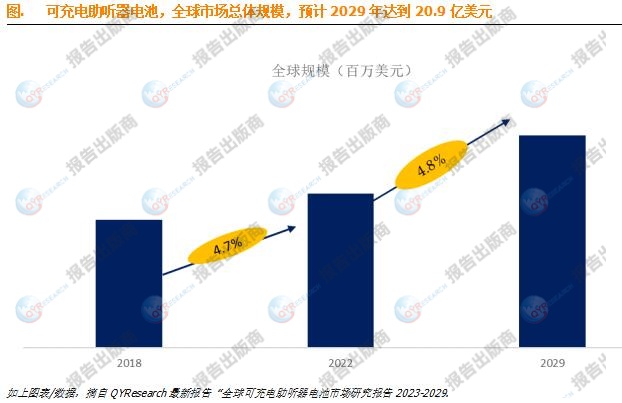 据QYResearch调研团队最新报告“全球可充电助听器电池市场报告2023-2029”显示,预计2029年全球可充电助听器电池市场规模将达到20.9亿美元,未来几年年复合增长率CAGR为4.8%。