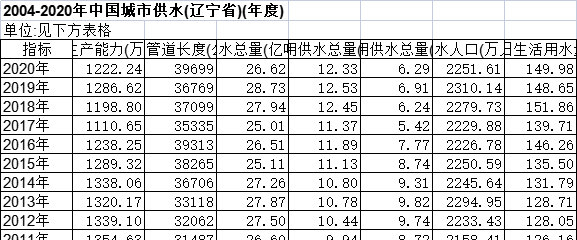 [经管数据集] 2004-2020年中国城市供水(辽宁省)(年度) |