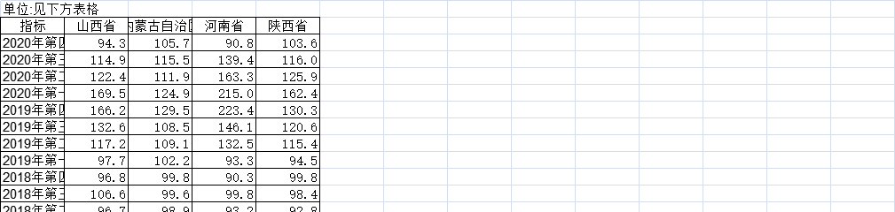 [经管数据集] 2004-2020年中国黄河中游畜牧业产品生产季度价格指数当季值(上年同期=100) |