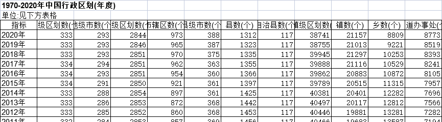 1970-2020年中国行政区划(年度).xlsx