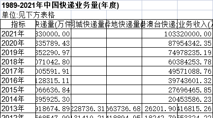 [经管数据集] 1989-2021年中国快递业务量(年度) |