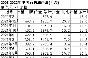 [经管数据集] 2008-2022年中国石脑油产量(月度) |