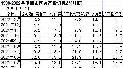 1998-2022年中国固定资产投资概况(月度).xlsx