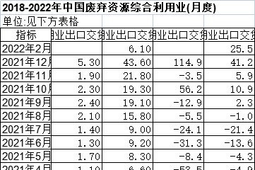 2018-2022年中国废弃资源综合利用业(月度).xlsx