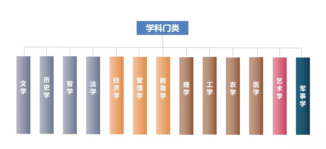 其中,13个学科门类分别是:文学、历史学、哲学、法学、经济学、管理学、教育学、理学、工学、农学、医学、艺术学、军事学。