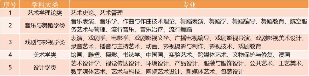 艺术学门类下,包含5个学科大类。艺术类专业各个学校有自己的特色,建议考生了解时,重点关注心仪学校的往年招生章程