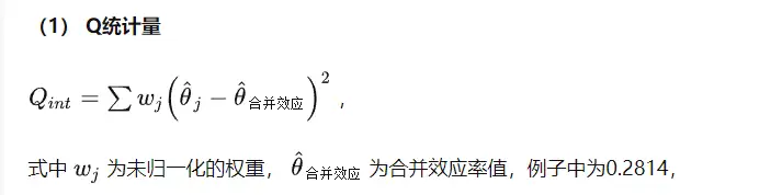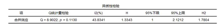 本次分析进行异质性Q检验时_p_值=0.113>=0.1,意味着并不存在异质性问题,可考虑使用固定效应模型。