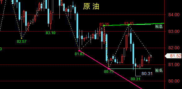 策略二:回调80.5-80.0附近多单进场,止损0.6个点,目标82.0-82.4一线。