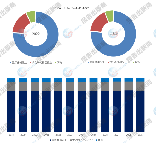 就产品类型而言,目前医疗保健行业是最主要的需求来源,占据大约75.9%的份额。